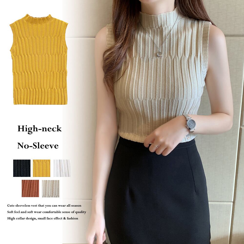 タートルネック ニット トップス レディース ショート丈 タンクトップ