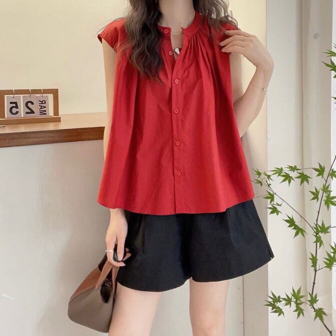 レディース シャツブラウス トップス 体型カバー 着痩せ ノースリーブ おしゃれ プルオーバー 袖なし 薄手
