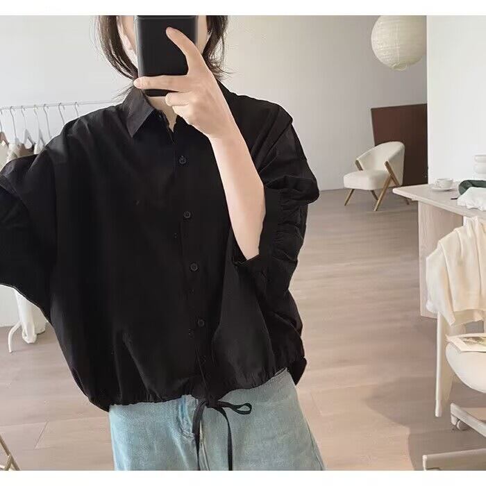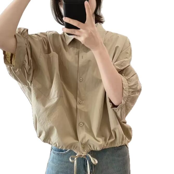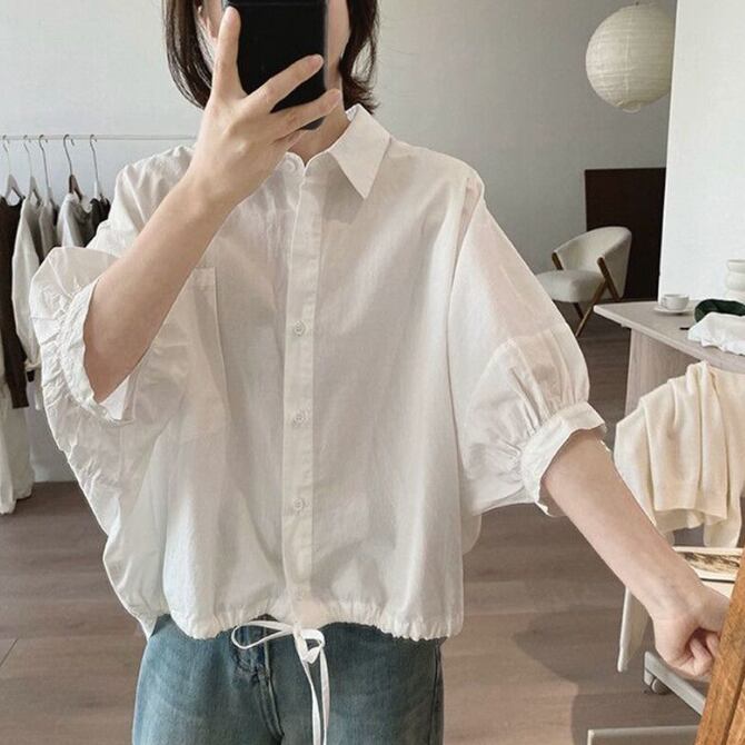 ウエストに施された紐で印象を変えられるブラウス シャツトップス