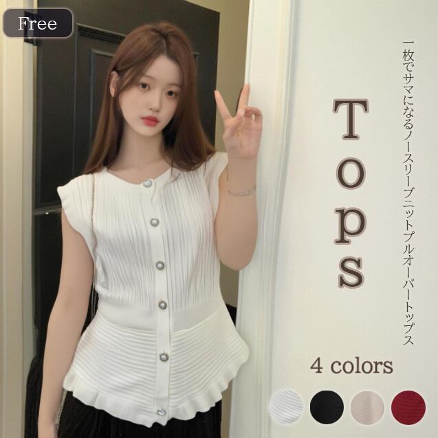 ・一枚でサマになるノースリーブニットプルオーバートップス 。