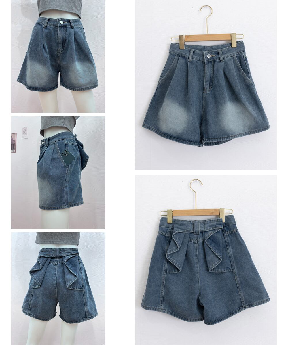 ウエストリボンデニムショートパンツ韓国風