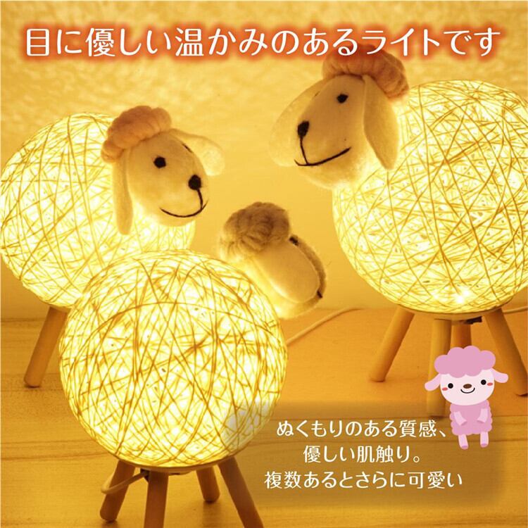 天然羊毛 LED USB電源 ランプ ラタン 編み インテリア 雑貨 テーブル ライト
