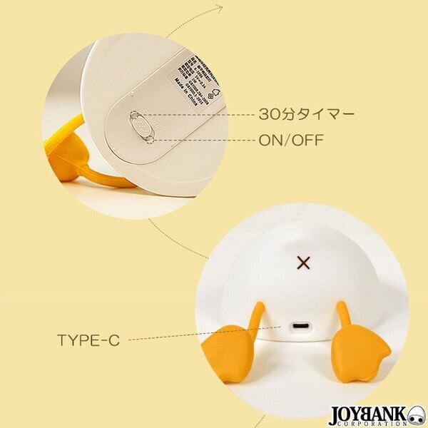 シリコン製のやわらかいあひるのおしりをタップして、明るさが3段階で調節できます。
