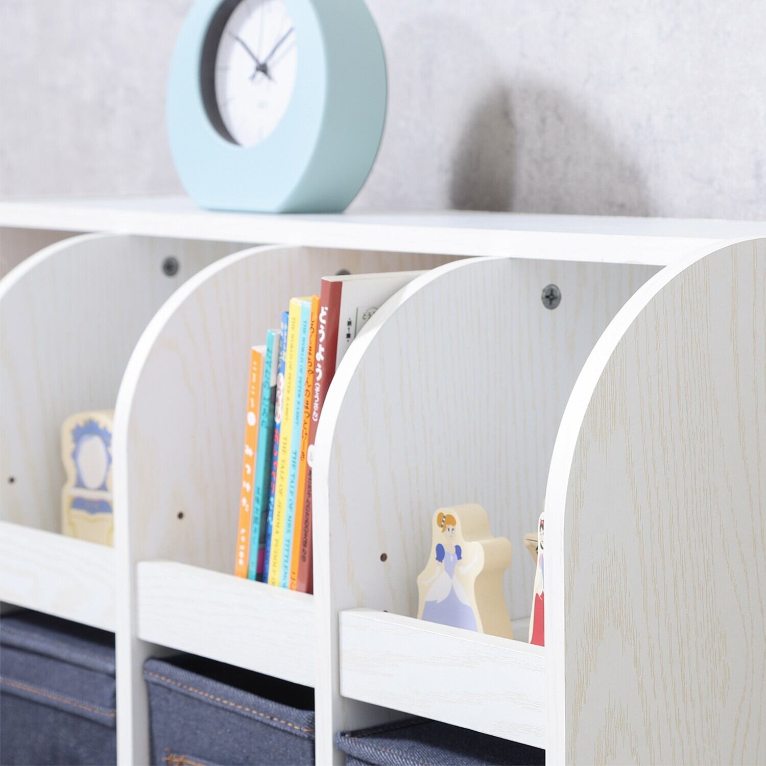 お子様も安心して使えるように、本棚正面の角は丸くデザインしています。