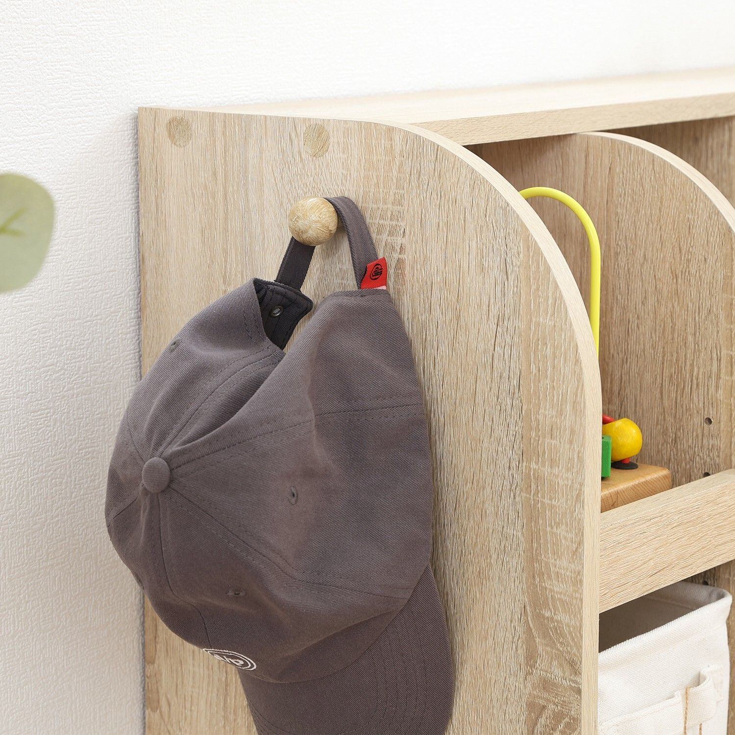 バッグや帽子を引っ掛けて収納できます。フックは左右どちらでも取り付けできます。