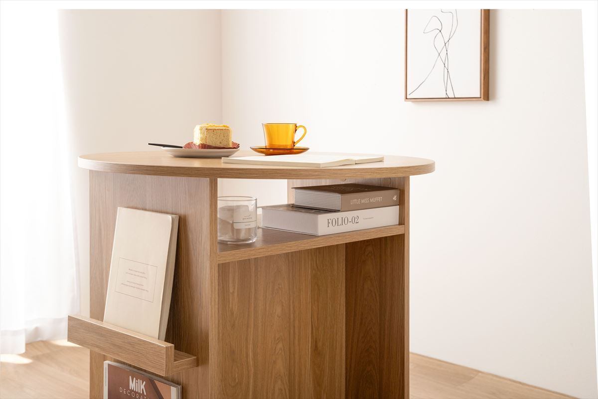【幅72cm】Luna ブックラック付き丸型ダイニングテーブル