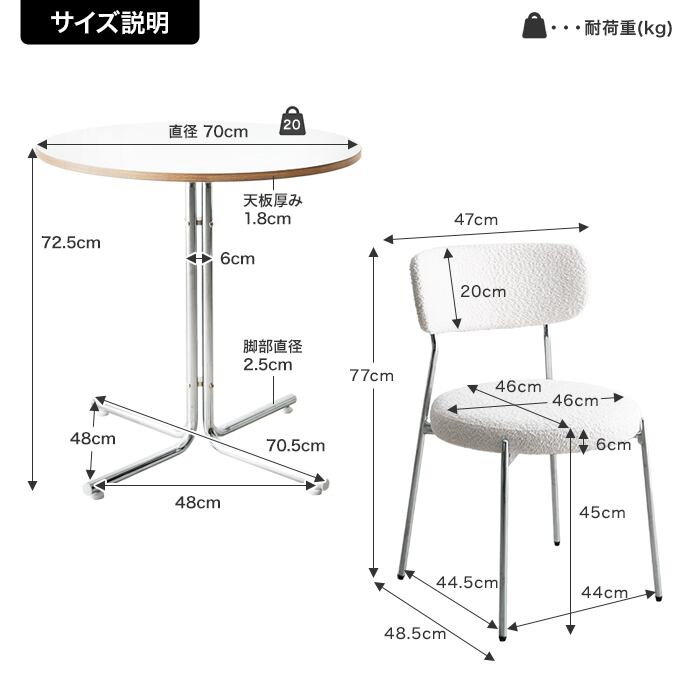 【耐荷重】テーブル:約20kg、チェア:約120kg
