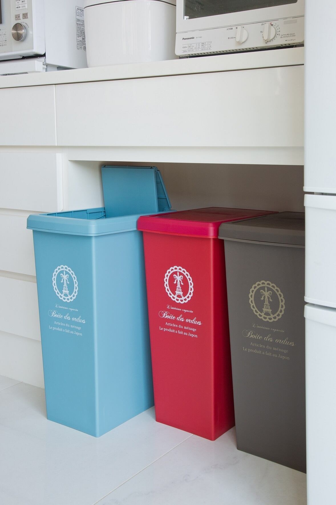 棚の下に収まるスリムなスライド式ダストボックス スライドペール30L