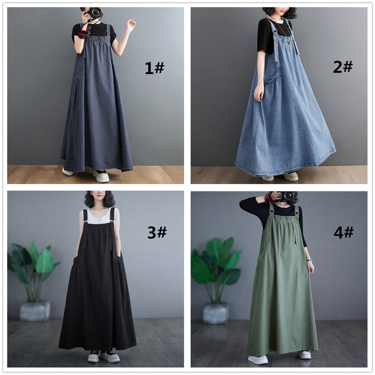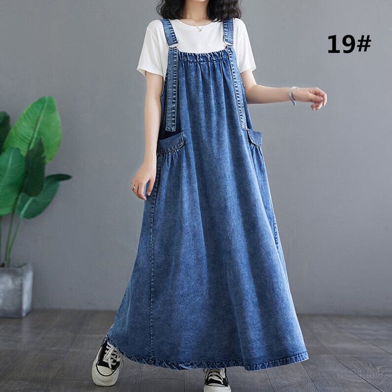 ジャンパースカート デニム デニムワンピース ロング マキシワンピース オールインワン
