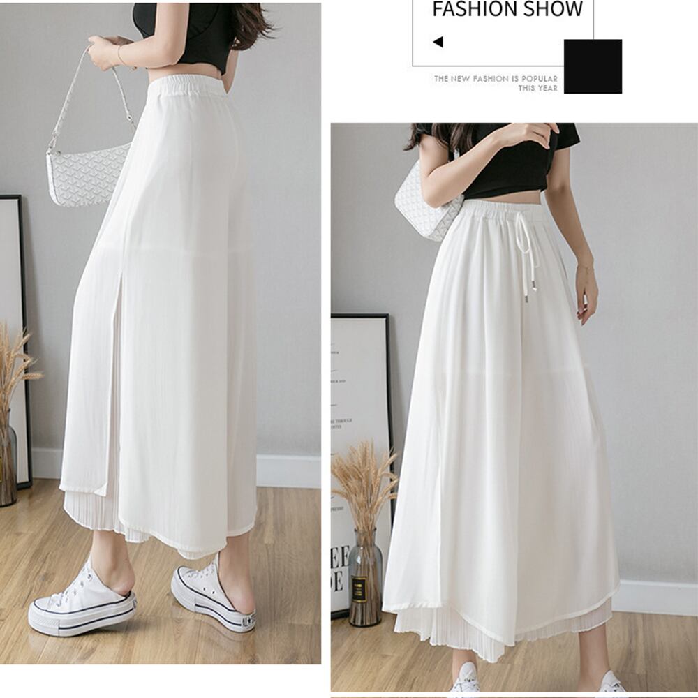 ワイドパンツ シフォン ガウチョパンツ春夏