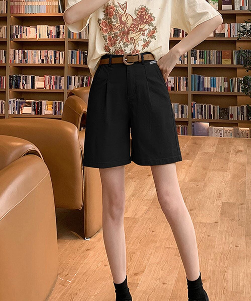 ベルト付きでコーデのアクセントになる、ハイウエストのタックショートパンツ。
