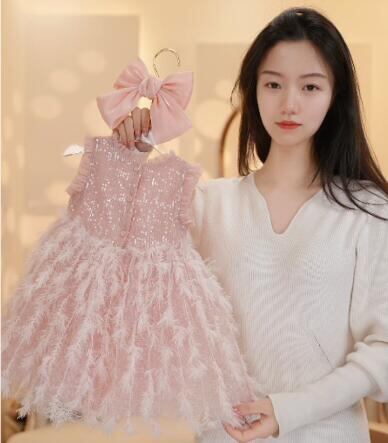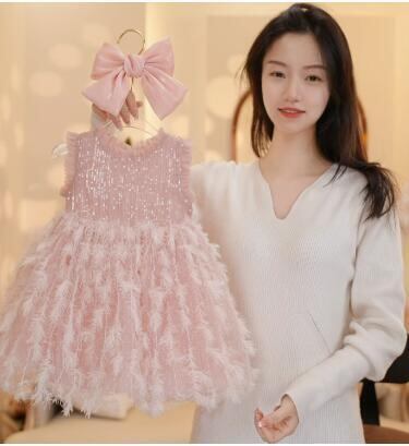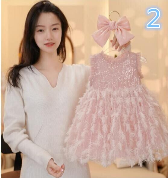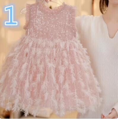 ガールズ 子供服 かわいいワンピース 袖なし 羽 スパンコール