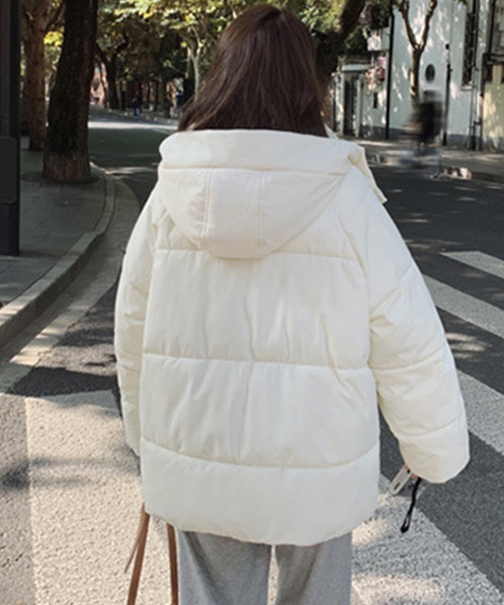 中綿ジャケット レディース暖かいアウター カジュアル フードブルゾン ジャンバー 韓国風 ボリューム感 エコダウン 冬服