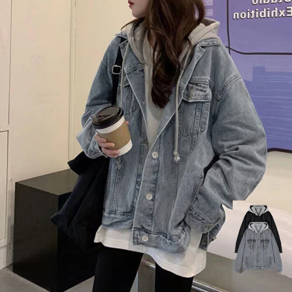 デニムコート着やせ/ジージャンフーディ/ストリート 春秋冬