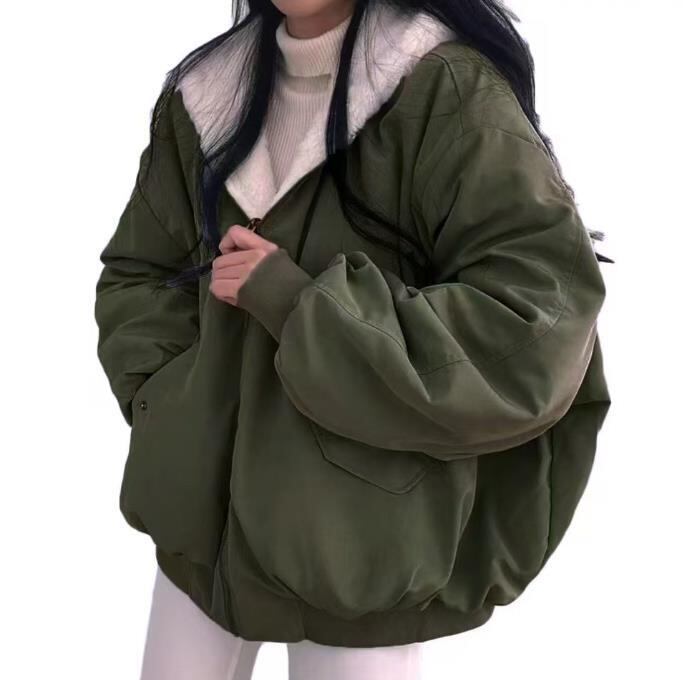 韓国風 リバーシブル ラムウール 厚手コート レディース フード付き 裏起毛 ダブルフェイス ジップアップ