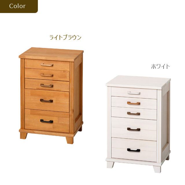 国産 天然木5段チェスト (ライトブラウン) (ホワイト)