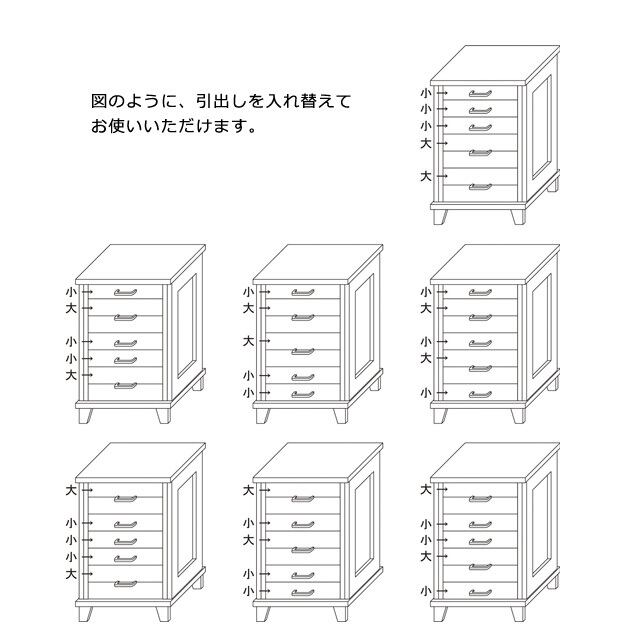 ●引出しを入れ替えてお使いいただけます。