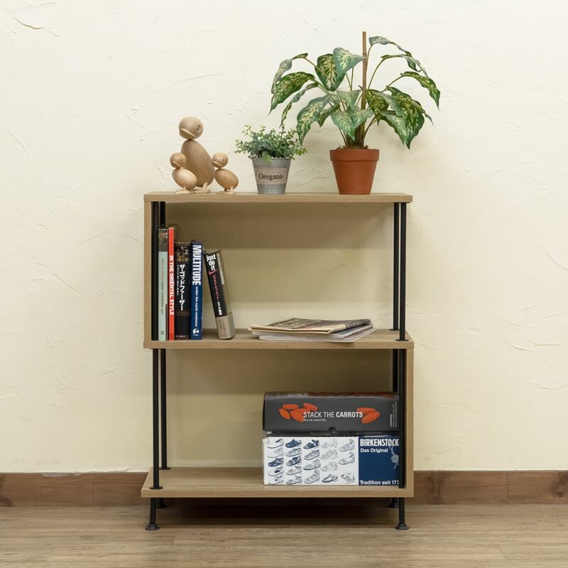 スリムなスチールフレームとヴィンテージテイストの木目調天板を組み合わせた、風通しがよく「見せる収納」を楽しむことができるオープンラック。