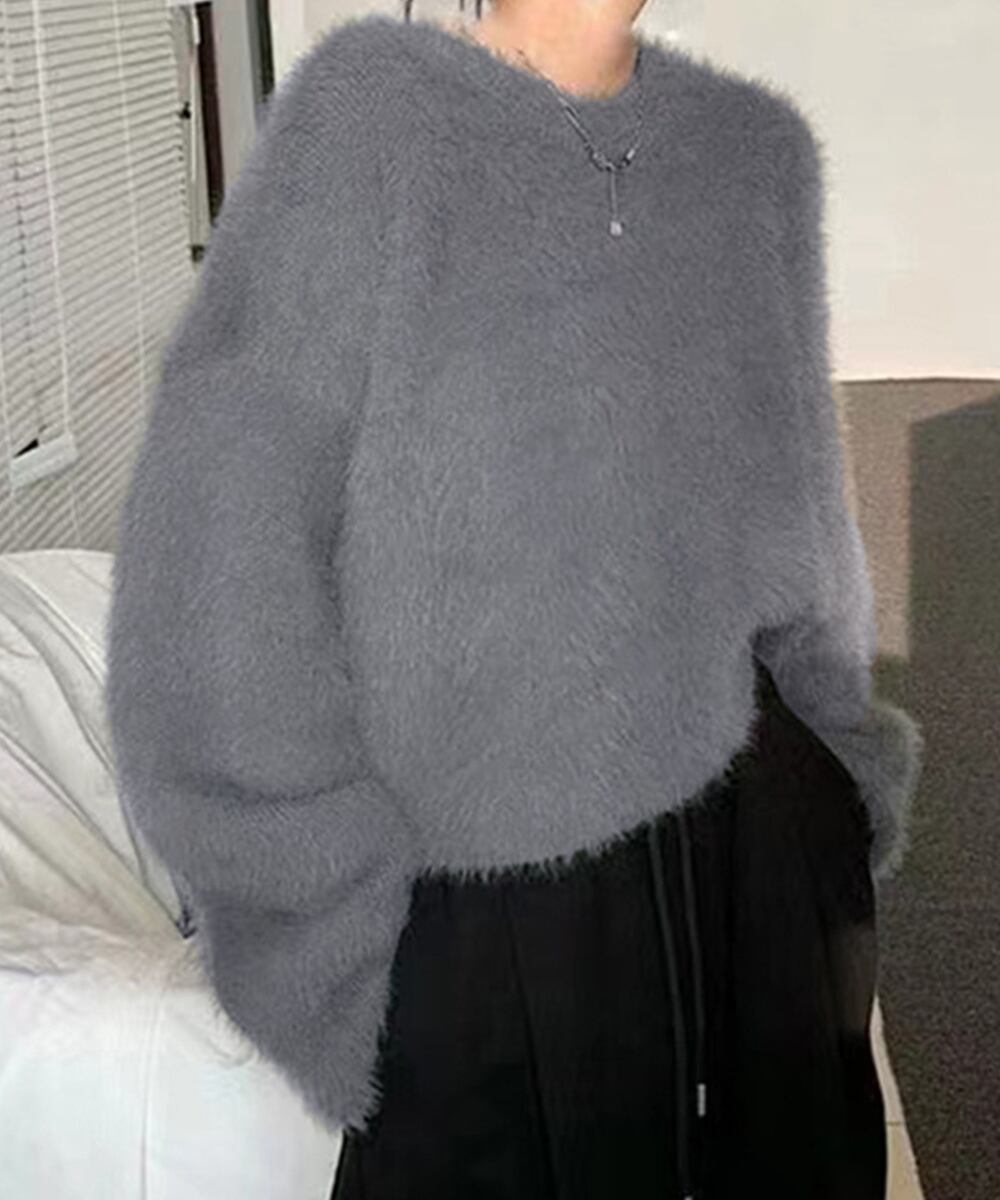 シャギーニットトップス クルーネック長袖