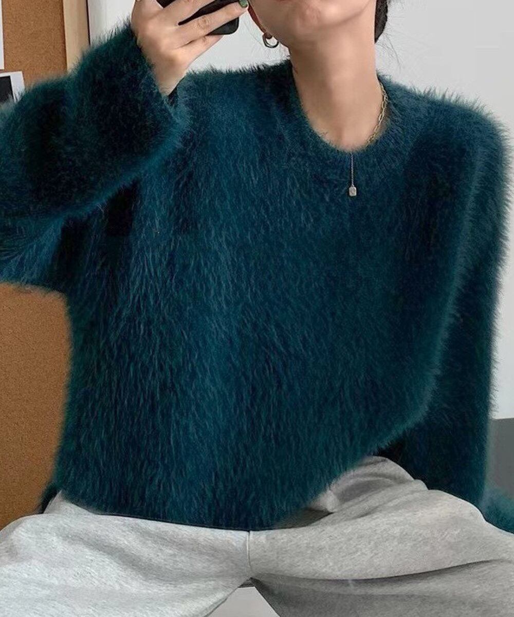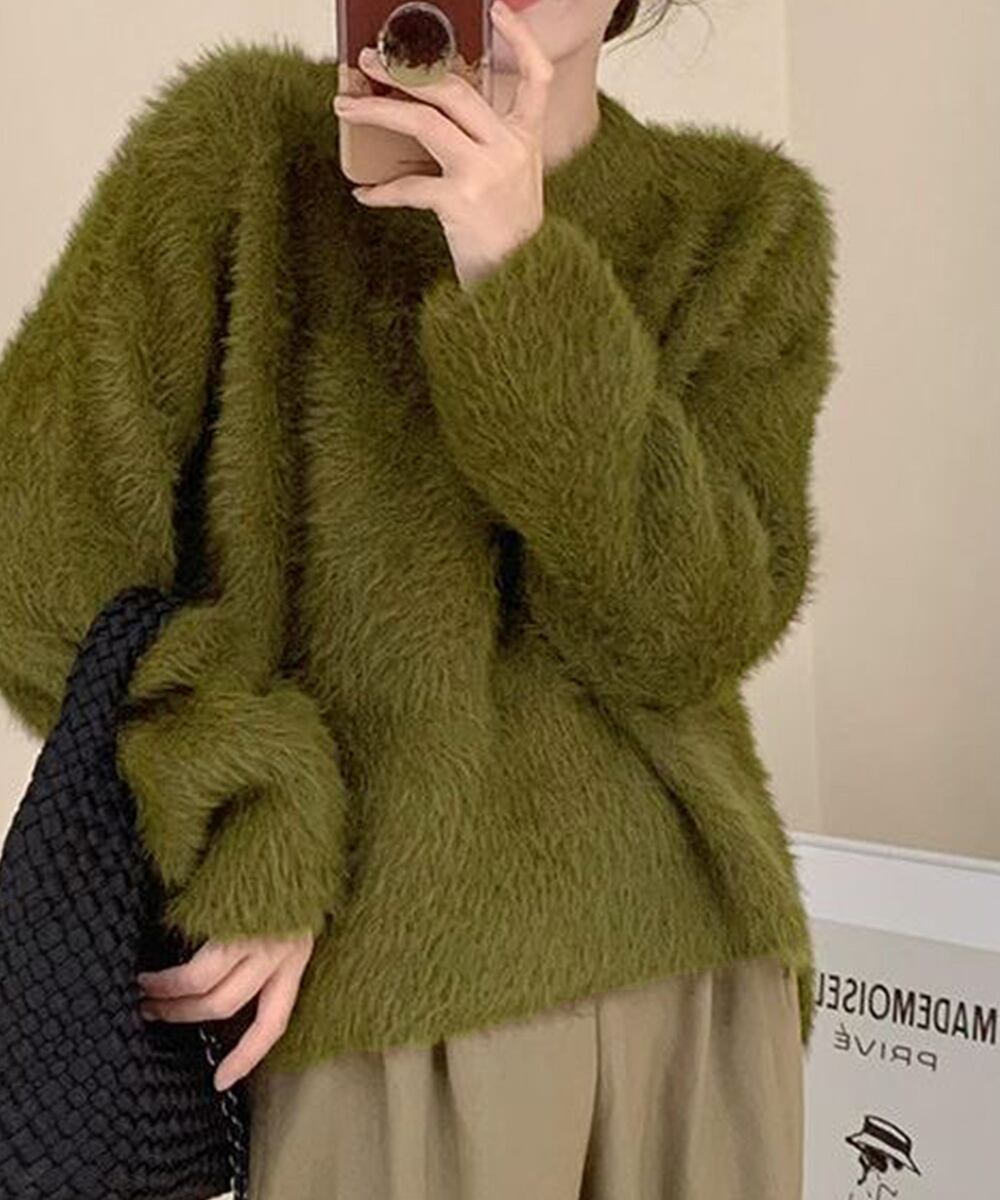 モヘアニットセーター レディース ふわふわニットプルオーバー オシャレ 秋冬シャギーセーター 韓国風 大人可愛いトップス
