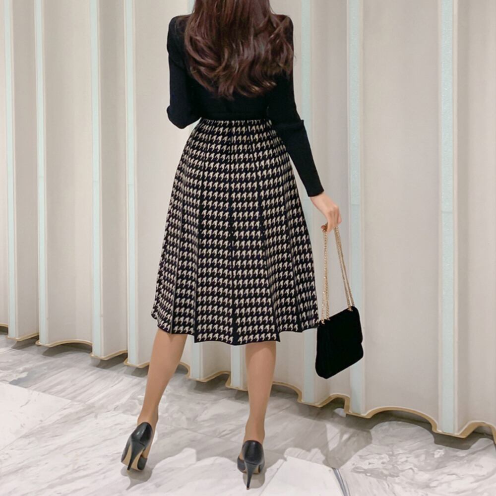 ニットワンピ千鳥柄 体型カバー ニット フェミニン ワンピ