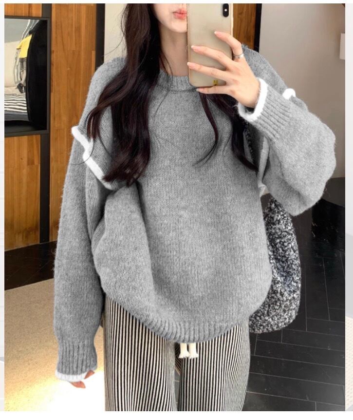 シンプル無地ニット/韓国風人気セーター/30代40代秋冬服