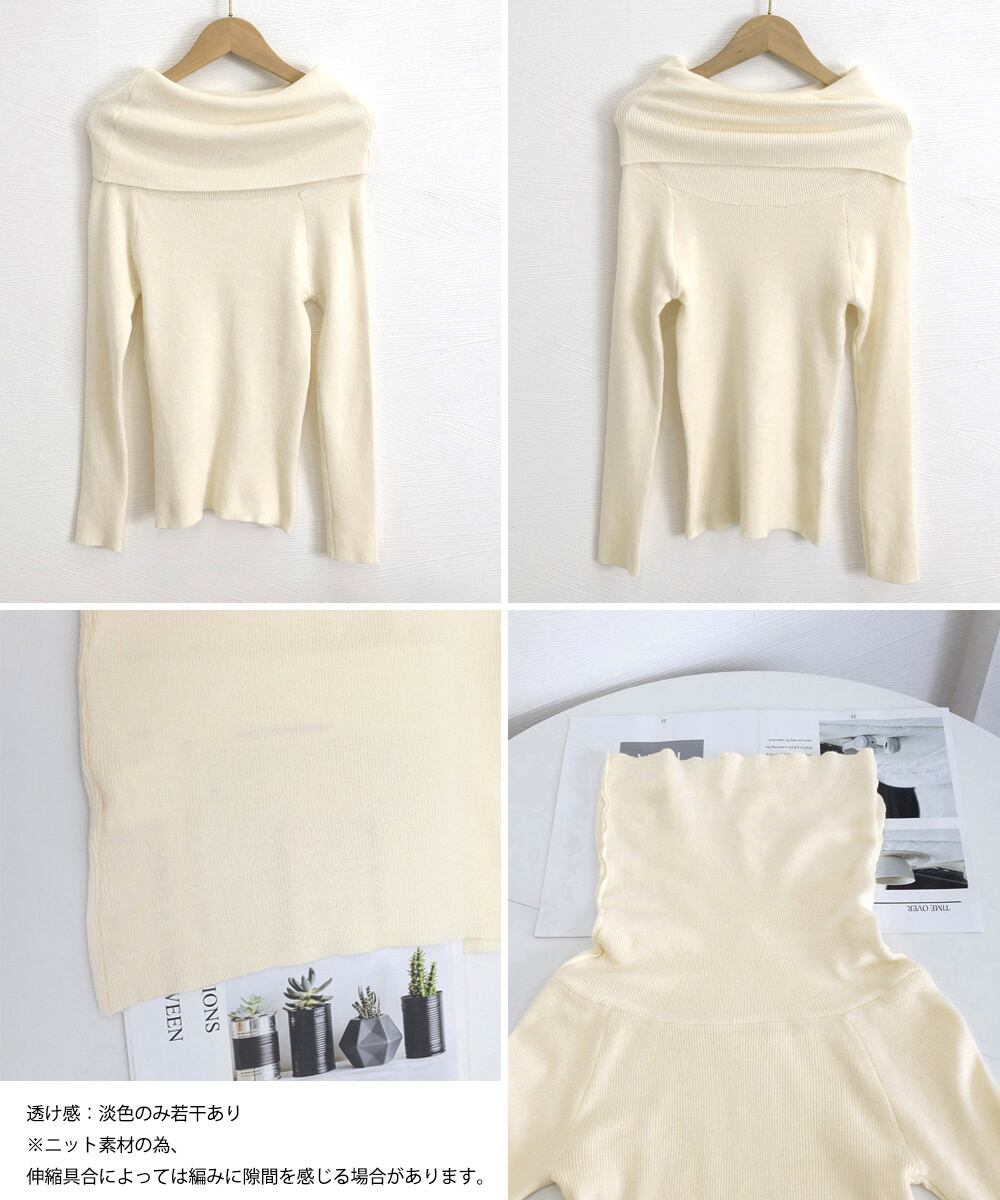ワイドオフショルダーニットトップス肩出し