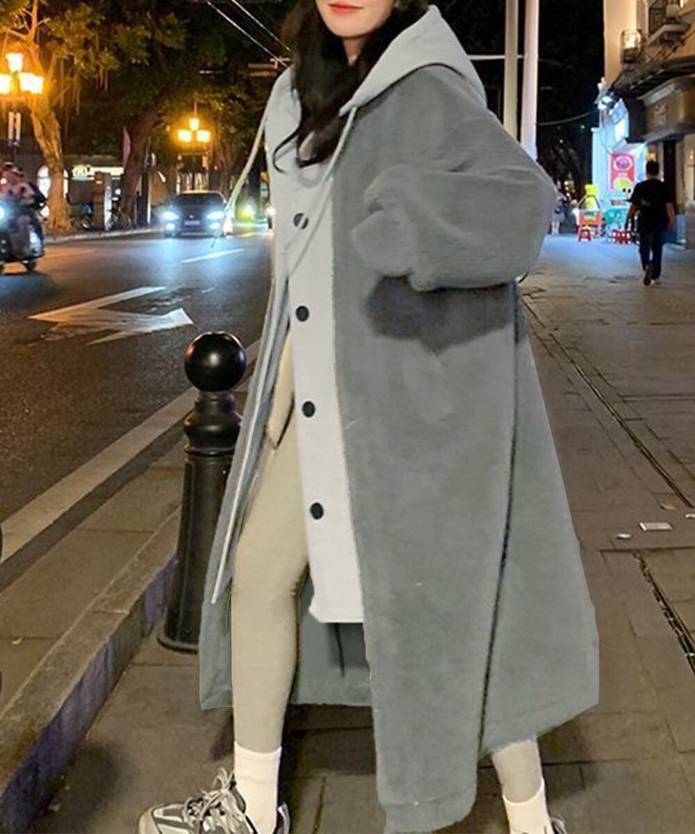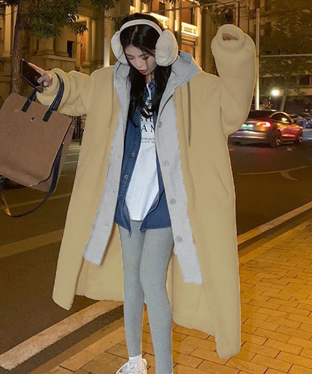 軽いフード付きボアジャケット 体型カバー 羽織り ゆったり ドロップショルダー 長袖アウター 秋冬服 カジュアル部屋着