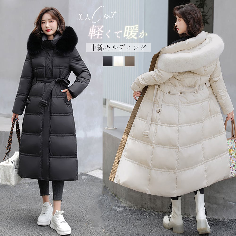 ロング ダウン風コート フード付き ロングジャケット 中綿コートaライン 暖かい アウター 防寒 アウトドアオルチャン
