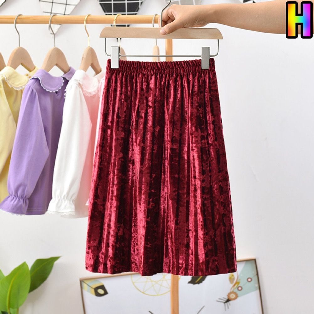 子供服 キッズ ガールズ スカート ベロア ベルベット 秋冬 プリーツ お出かけ 外出