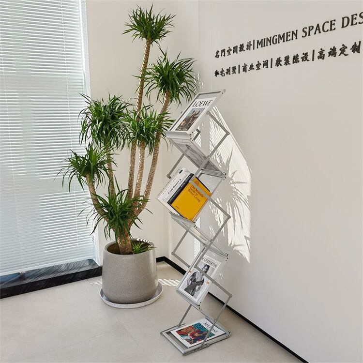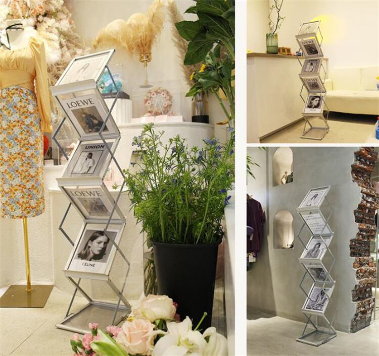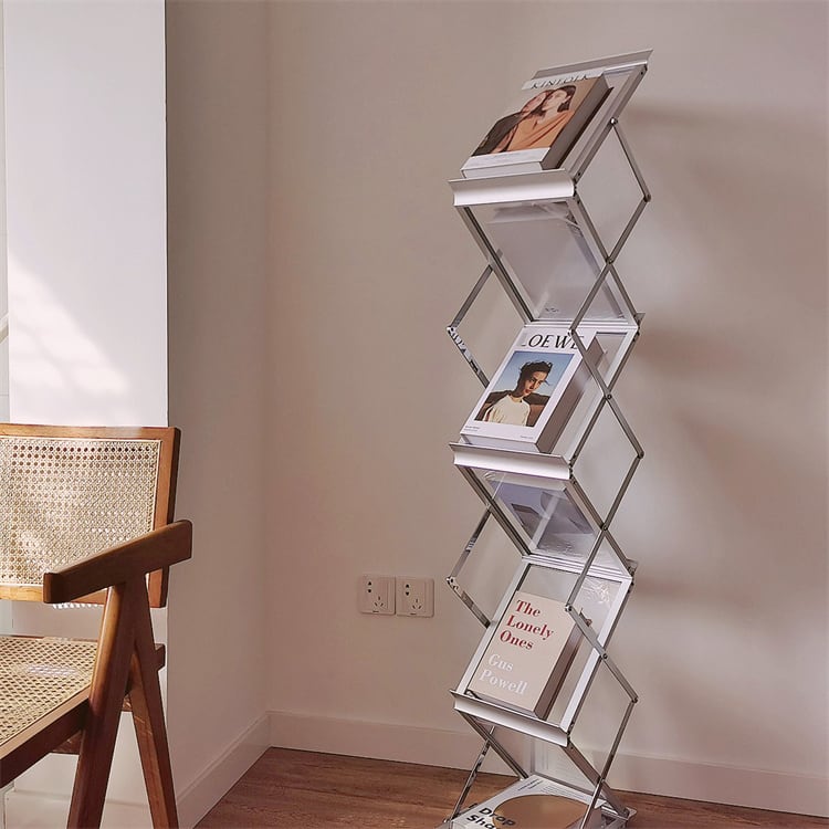 折りたたみ伸縮式マガジンラック 2色展開 アルミ合金と鉄の素材 新聞整理に特化 落地設置 省スペース設計