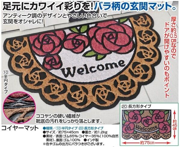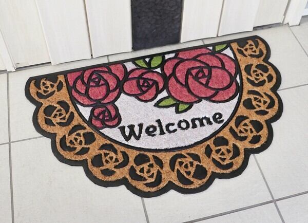 足元にカワイイ彩りを!バラ柄の玄関マット。