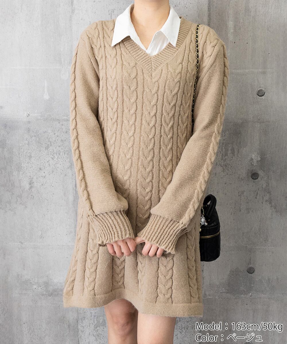 ニットワンピース ケーブル編みミニワンピ