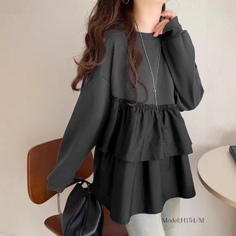 プルオーバー レディース トップス トレーナー 異素材 ビッグシルエット 長袖 クルーネック