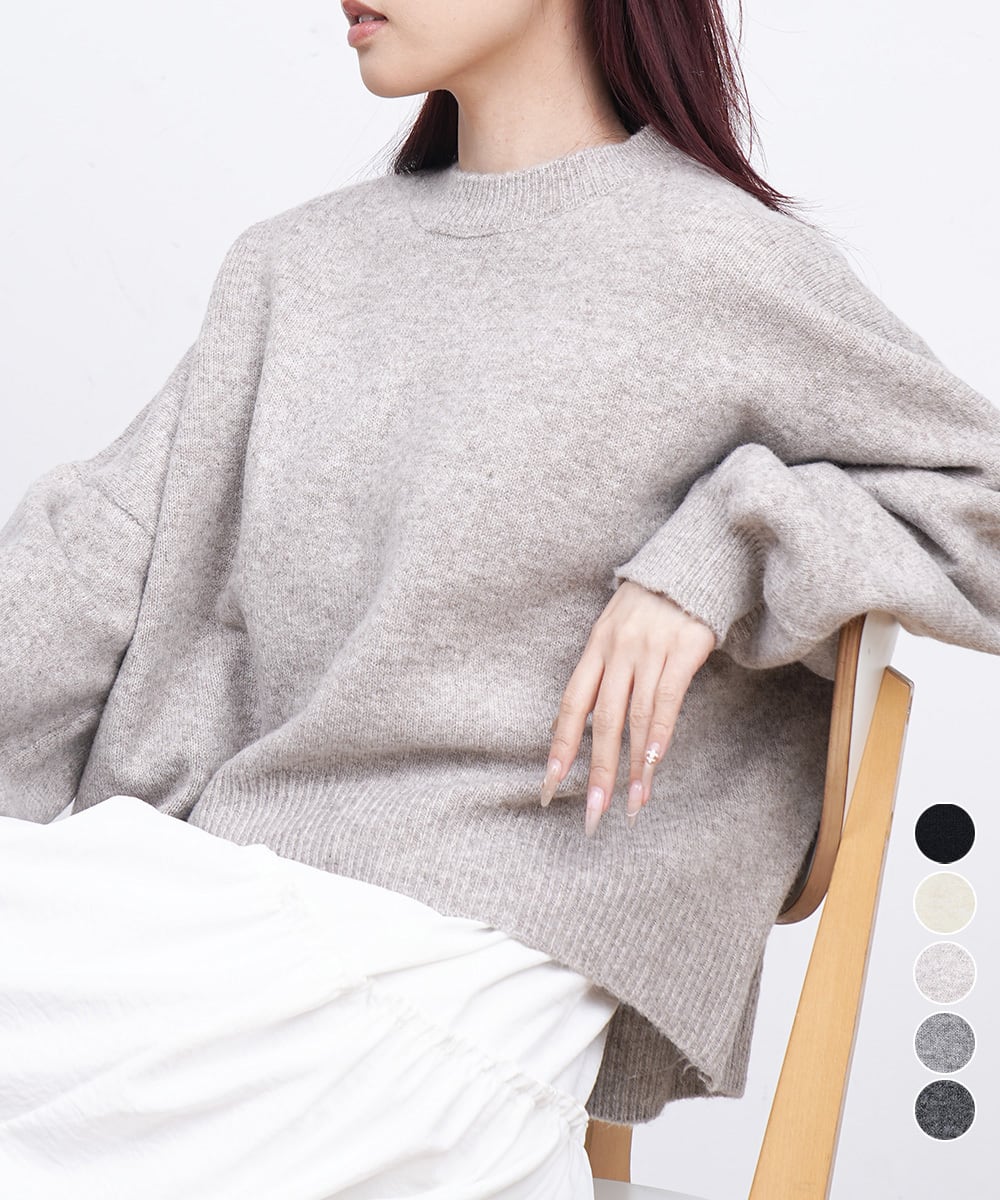 ゆったりシルエットが魅力のドロップショルダーニットプルオーバー。