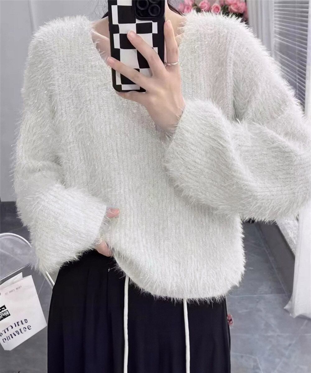 レディース ふわふわ モヘアニットプルオーバー 大人可愛いシャギーセーター 韓国風きらきらトップス キレイめニット 無地