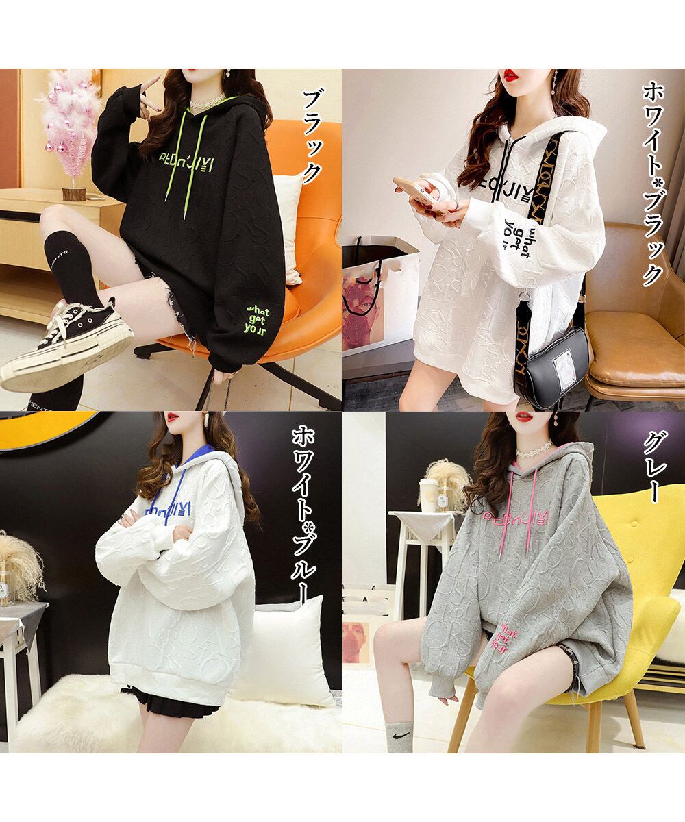 レディース フード付きスウェット 体型カバー 英字ロゴ フーディー 韓国風 ロングトレーナー 春秋冬ゆったり ストリート