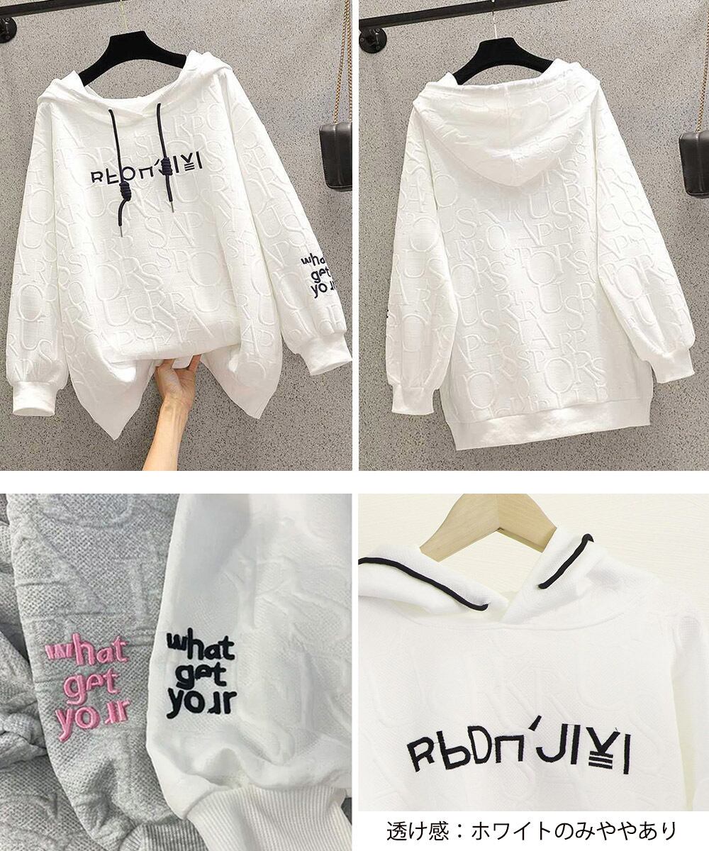 立体感ある同色のエンボス加工ロゴがアクセントになったオーバーサイズパーカー