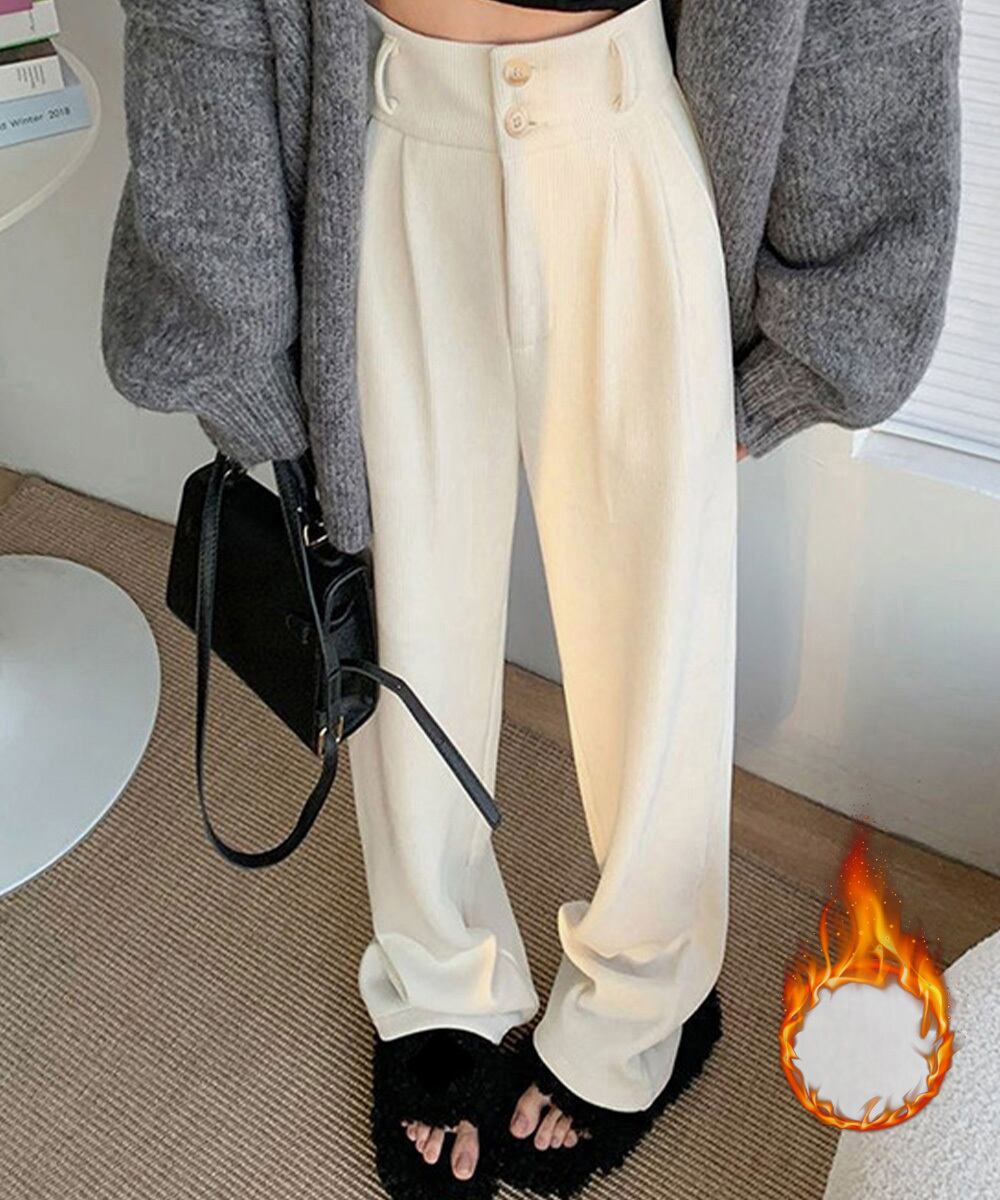 細見えタックパンツ 裏起毛パンツ韓国風 厚手イージーパンツ