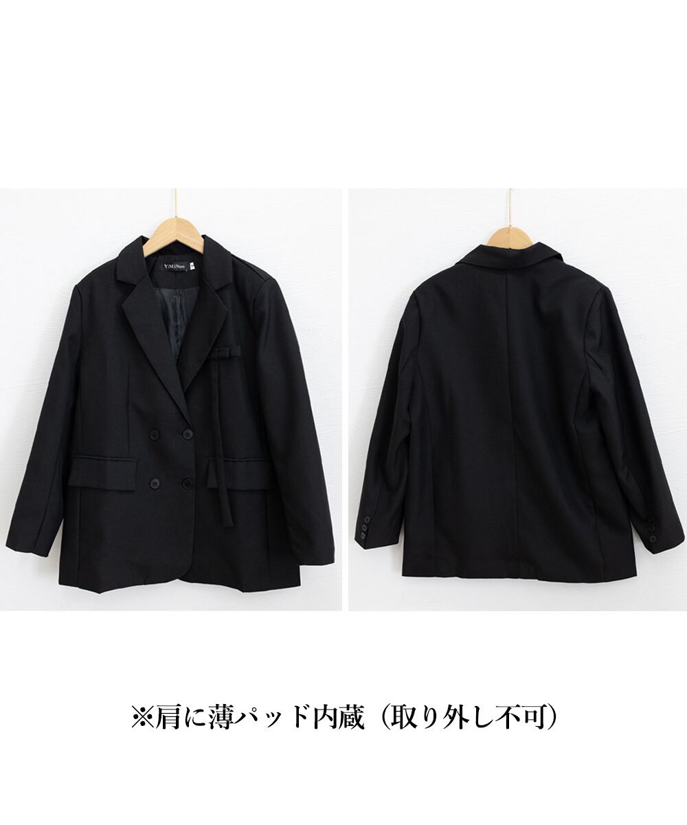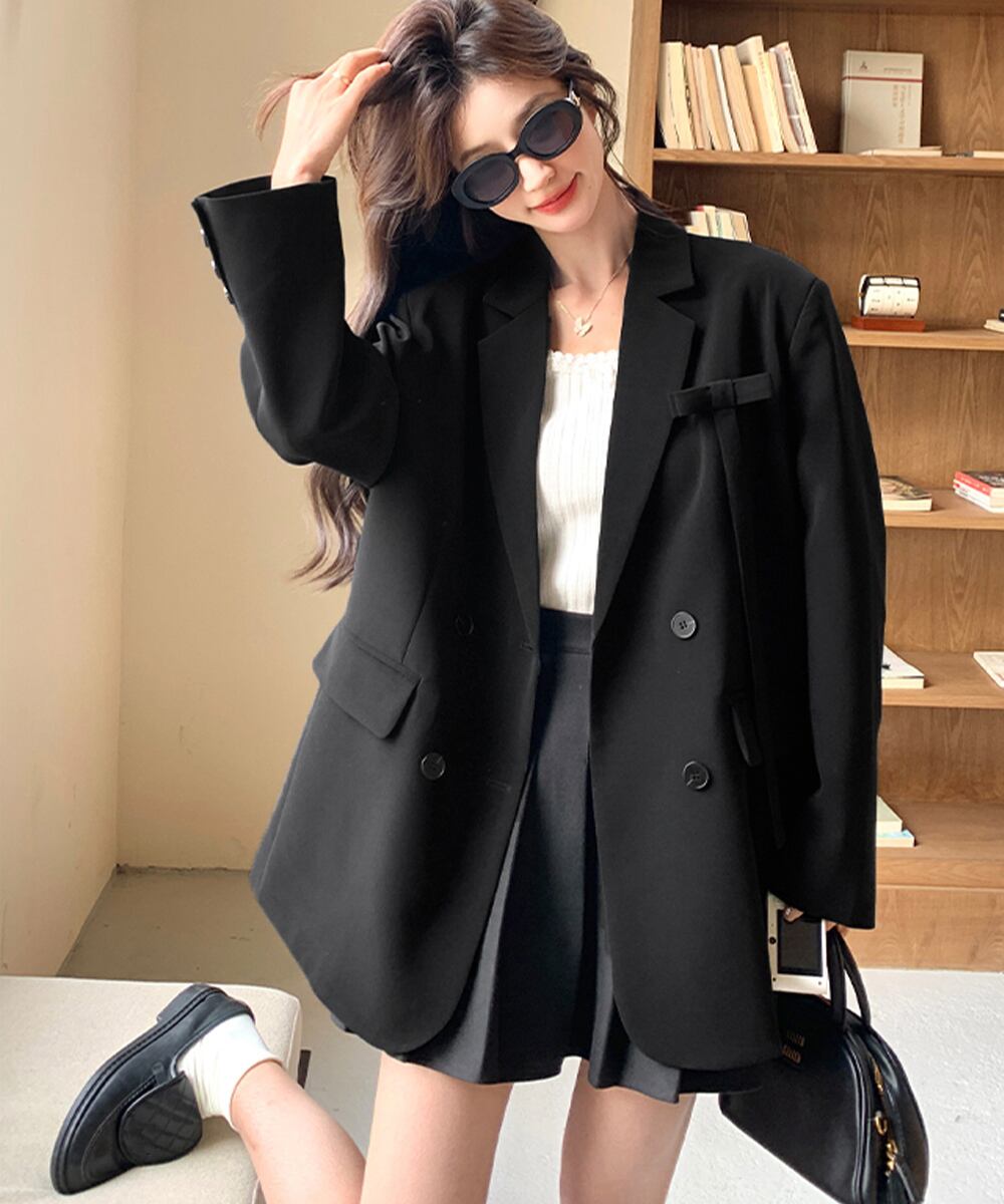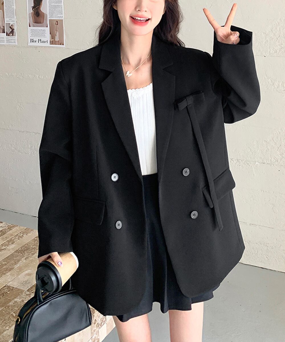 肩パッド入りオーバーサイズジャケット ポケット付き スーツジャケット オフィスカジュアル 韓国風 ベーシックアウター長袖