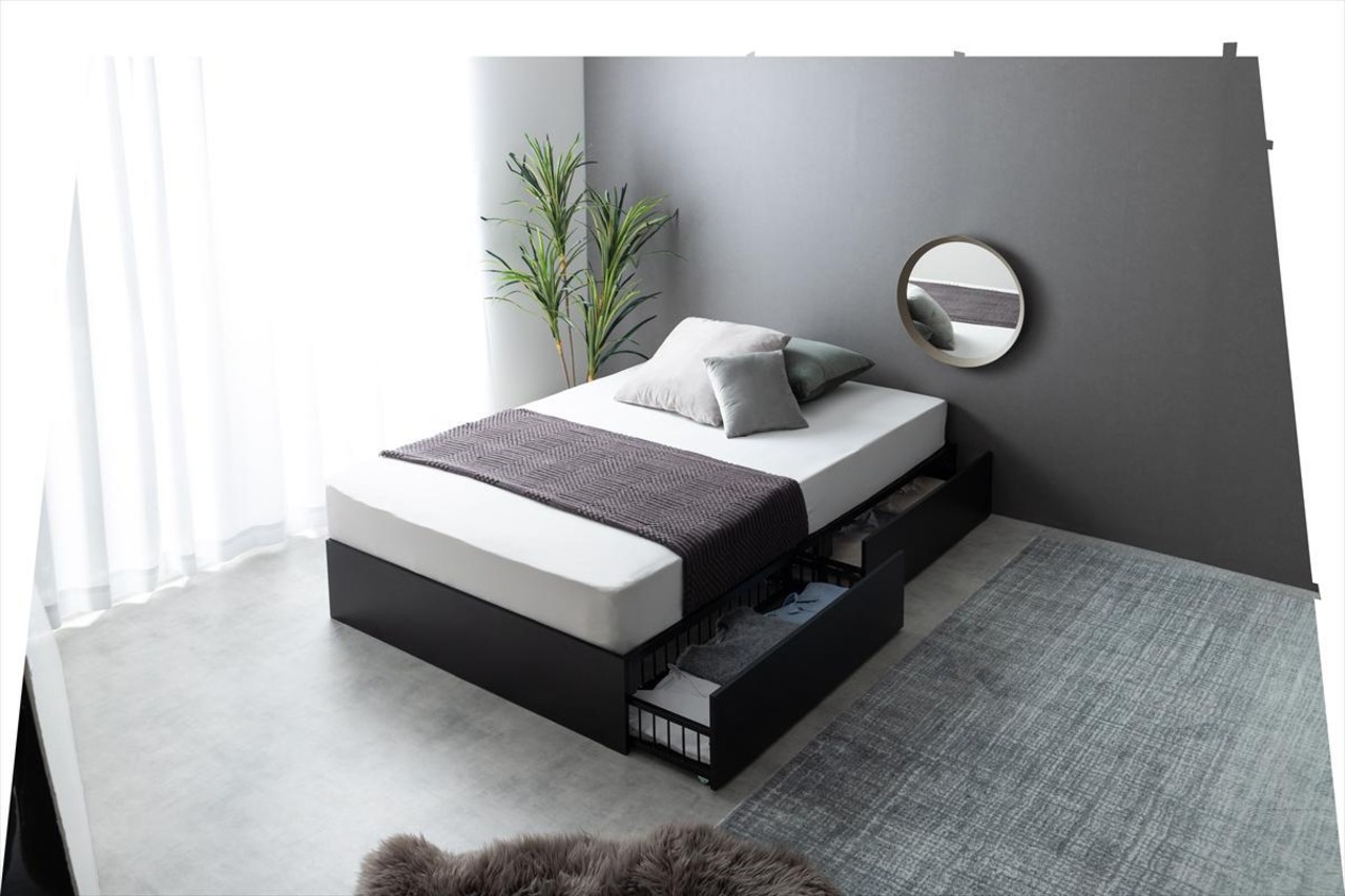 スタイリッシュな美しさとパイプの耐久性を兼ね備えた『Stock(ストック)』引出し収納ベッド