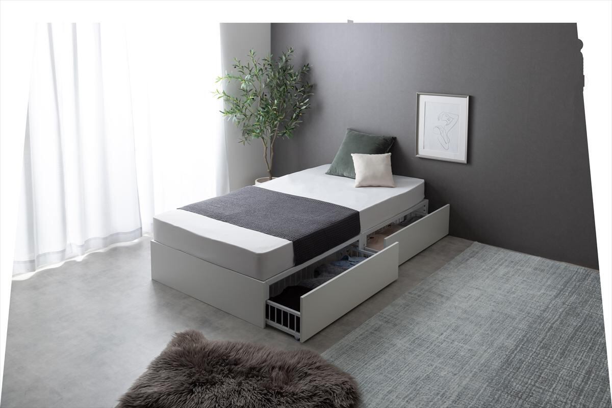【高密度ポケットコイルマットレス付】【シングル】Stock 引出し収納ベッド