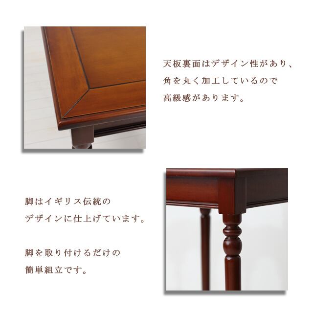 ●天板部分に脚を取り付けるだけで簡単に組立られます。工具付です。