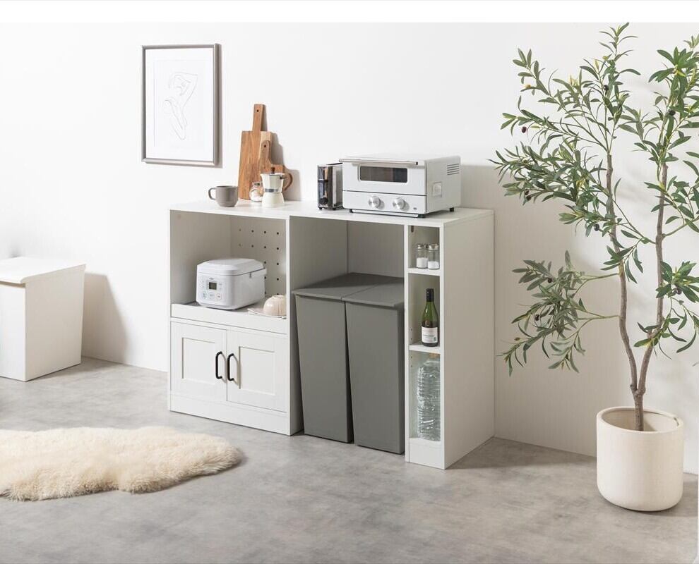 置く場所に合わせて、天板の広さを変えられる伸縮スライド台付きキッチンカウンター