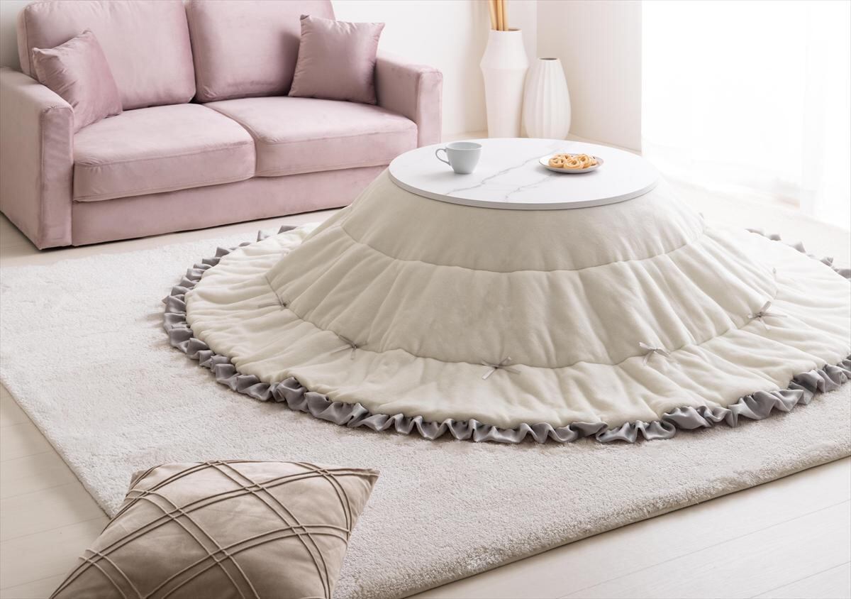 さりげないリボンと、やわらかなフリルにときめく『Plie(プリエ)』こたつ掛け布団