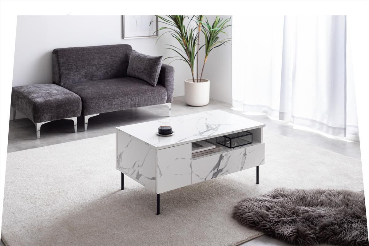 【幅80cm】大理石柄引き出し付きセンターテーブル