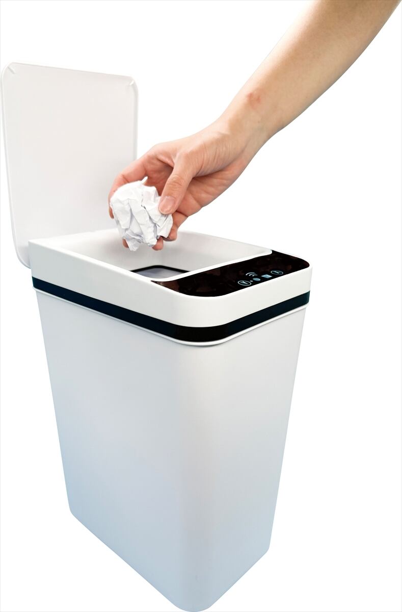 どこにでも置きやすいスリムな自動開閉ゴミ箱・ゴミ箱には触れずにセンサーに手をかざすだけでパッと簡単に開けられるので衛生的・ワンタッチでフタがずっと開きっぱなしにもできるので、頻繁にゴミを捨てる時にもとっても便利!・横幅わずか約15.8cm!・センサー感知距離/最大約20cm