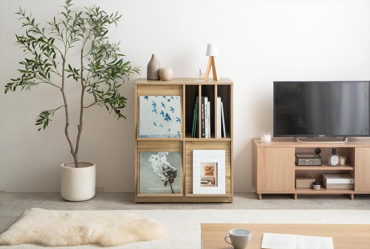 生活感を隠して、ディスプレイで魅せる『Ritari(リタリ)』フラップ扉付きキャビネット