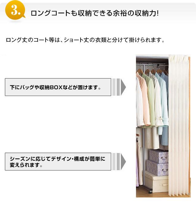 ●カーテン付きなので衣類をホコリから守り、中身も見えません。