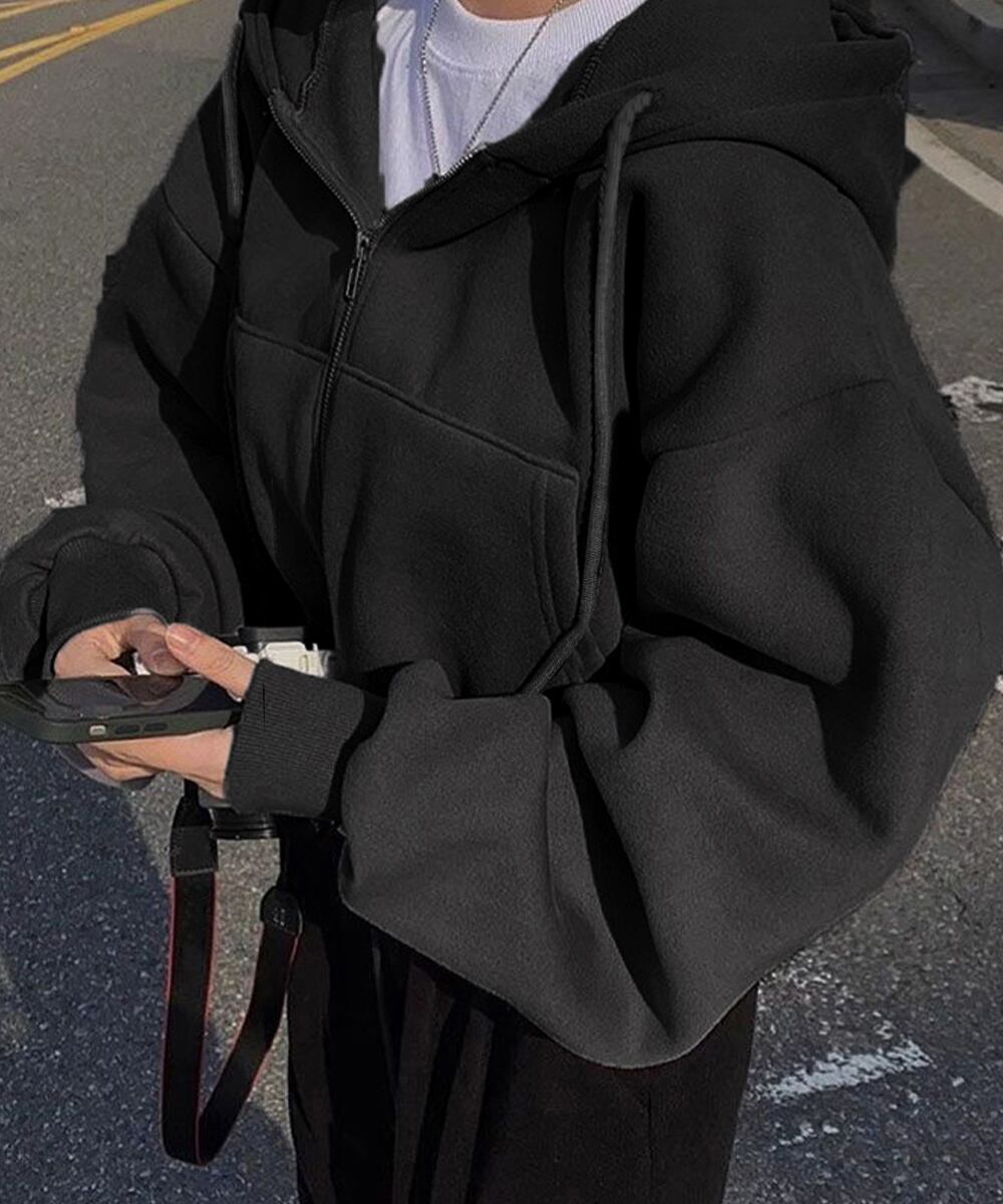 レディースフード付きスウェット ゆったりライトアウター ジップアップ ルーズスウェットパーカー 韓国風長袖羽織り着やせ